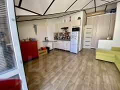 Планировка студии продумана до мелочей: в помещении установлен раскладной диван на два спальных места, вся необходимая техника, включая холодильник, стиральную машину, плиту и микроволновую печь, а также водонагреватель для автономного горячего водоснабжения. Важным преимуществом является система теплого пола, обеспечивающая комфорт в межсезонье!