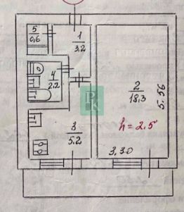 -Площадь кухни: 5,2 м2