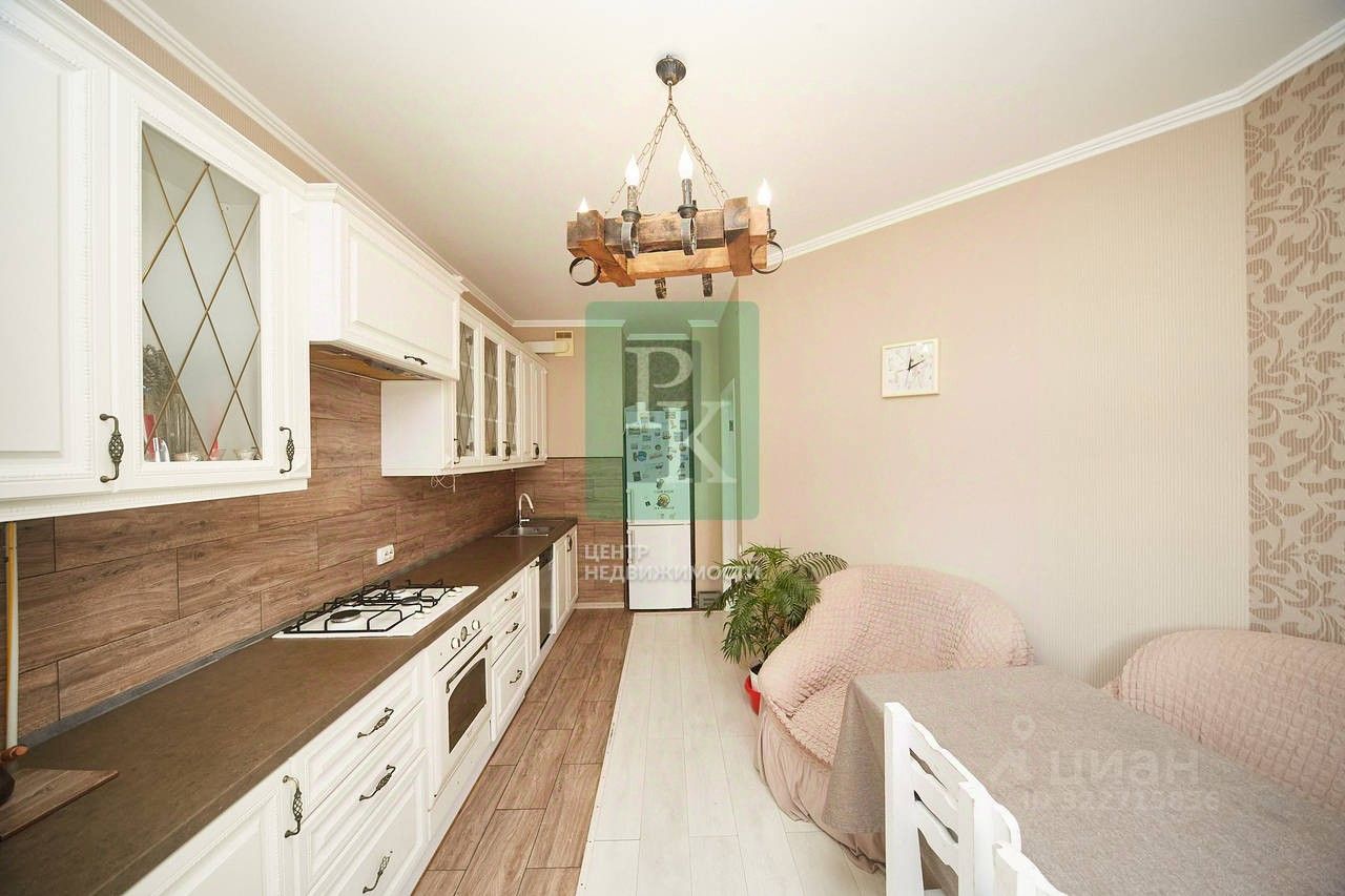 Трёхкомнатная квартира 90 м2 (с балконом и лоджией), на 3/11 этаже дома, с просторной кухней 13.3 м2. Расположена в г. Севастополь, Гагаринский район, ул. Тараса Шевченко, д. 21.