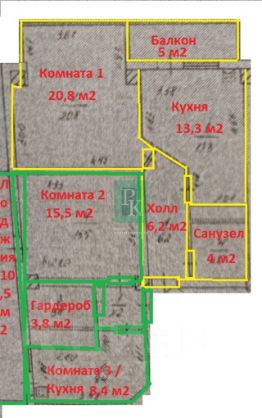 -Площадь кухни: 13.3 м2