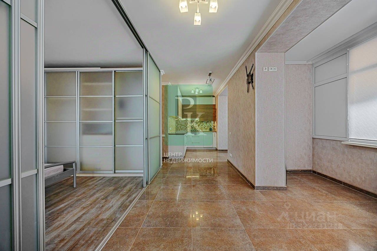 Крупногабаритная однокомнатная квартира в новом доме, площадью 60 м2, на 3 этаже 8-этажного дома, с современным ремонтом, мебелью и техникой. Объект расположен по адресу : г. Севастополь, Нахимовский район, ул. Истомина, д. 12.