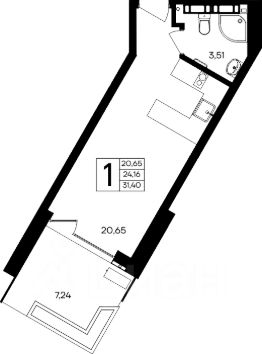 Апартаменты-студия, 31,4 м²
