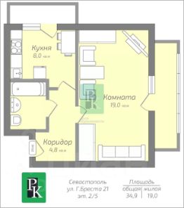 Однокомнатная квартира Чешского проекта, общей площадью без учета балкона и лоджии 34.9 м2, на 2/5 этаже дома. Расположена г Севастополь, Гагаринский район, улица Героев Бреста, д 21.