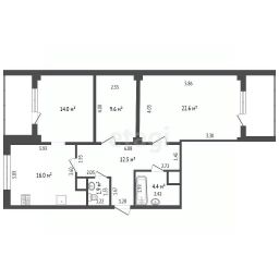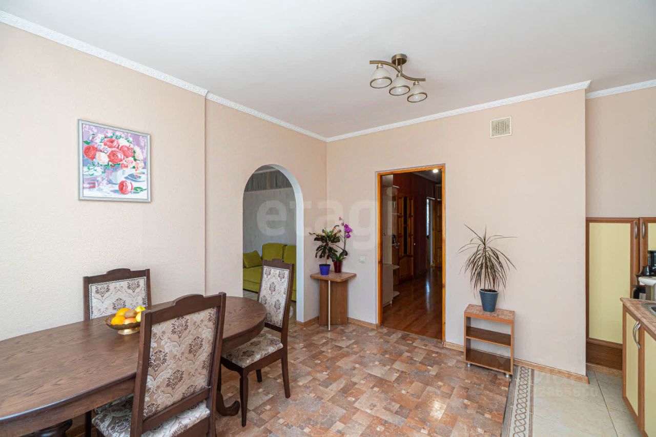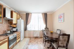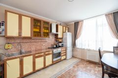 Кухня (16 кв.м.) просторная и функциональная, с прямоугольной планировкой, где с легкостью разместится вся семья за обеденным столом.