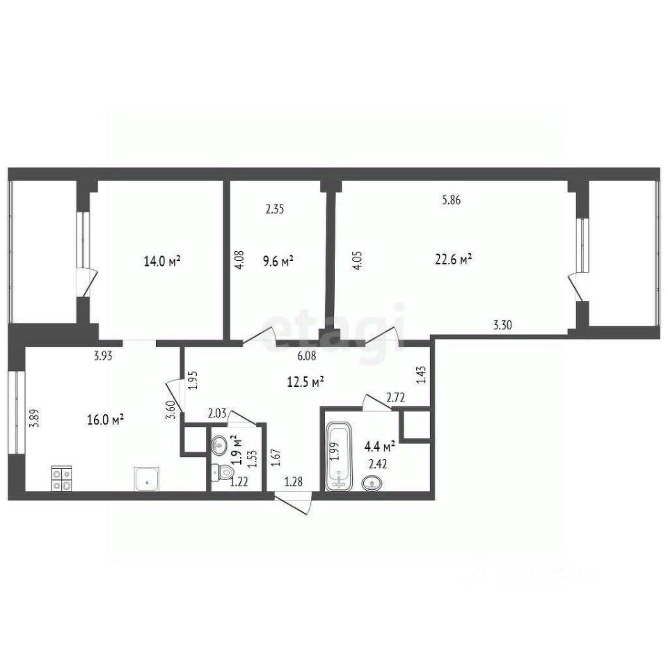 Две лоджии - площадью по 2 кв.м. Установлены батареи, что обеспечивает комфортное тепло и уют в любое время года.