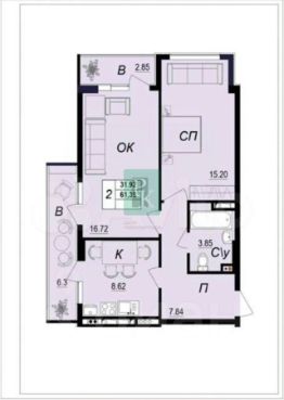 -Общая площадь: 61,9 м2