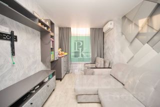 Квартира находится на восьмом этаже десятиэтажного дома с шикарным панорамным видом на море. Общая площадь - 61.9 м2, площадь комнат - 17м2 и 15.2 м2, кухни -8.7 м2, лоджия -6.3 м2, установлен двухконтурный газовый котел АГВ.