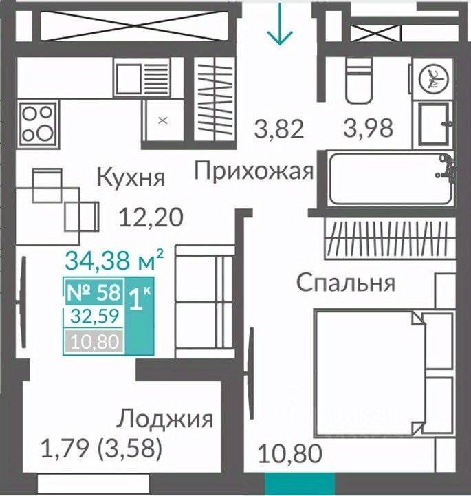 32,59 м²