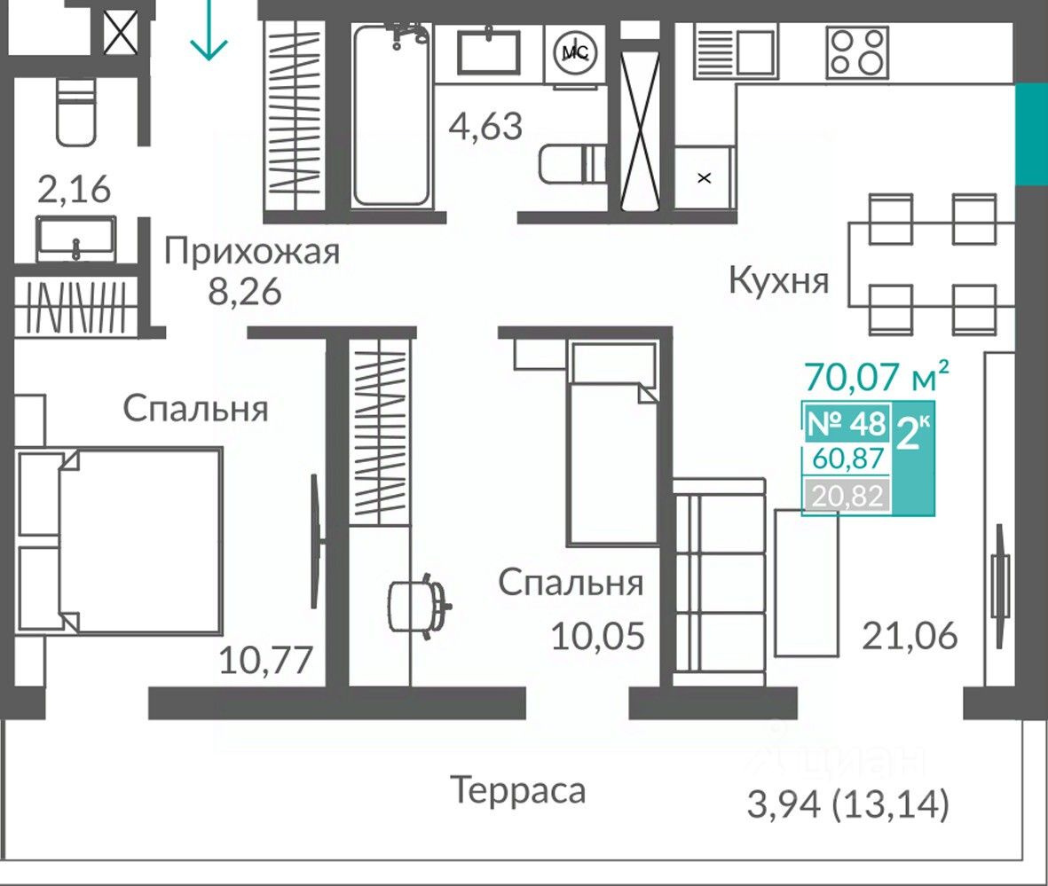 60,87 м²