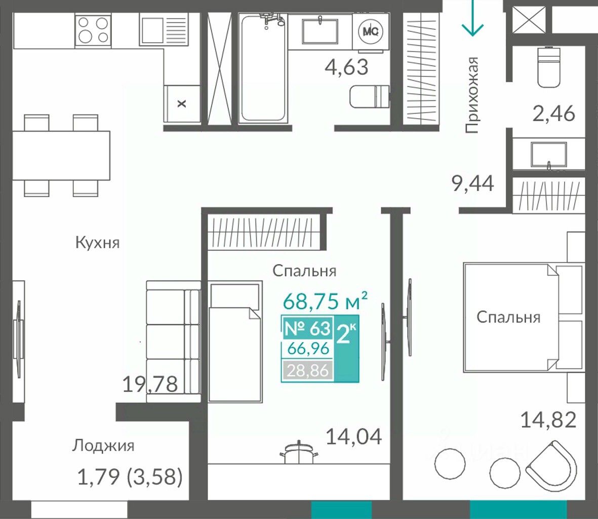 66,96 м²