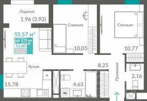 Продается 2-комн. квартира, 53,6 м²