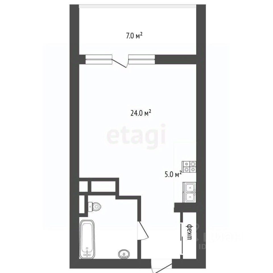Площадь лоджии - 7м2