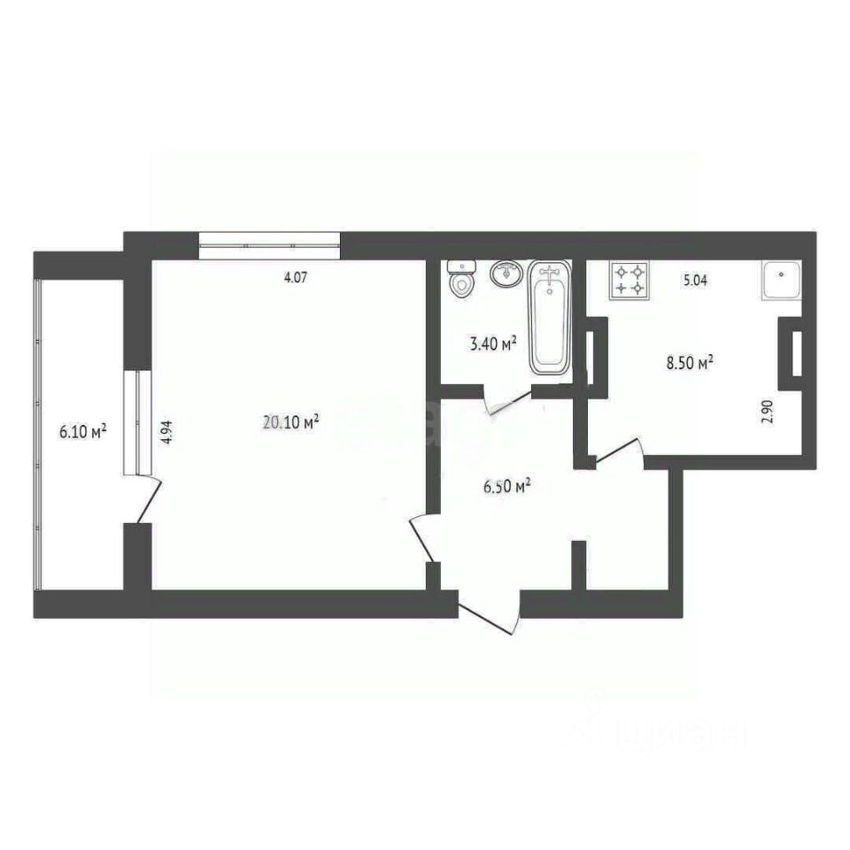 Кухня 8,5 м2; лоджия 6,1 м2