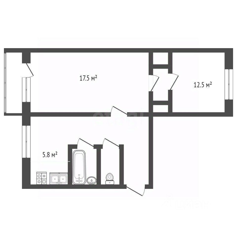 Комната: 17.5 кв.м; 12.5 кв.м