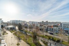 Эта квартира не только просторная и тёплая, но и обладает потрясающим видом: из зала 18,6 м кв. открывается  панорама на проспект, а спальня 12,1 м кв.выходит во двор, что обеспечивает тишину и спокойствие.