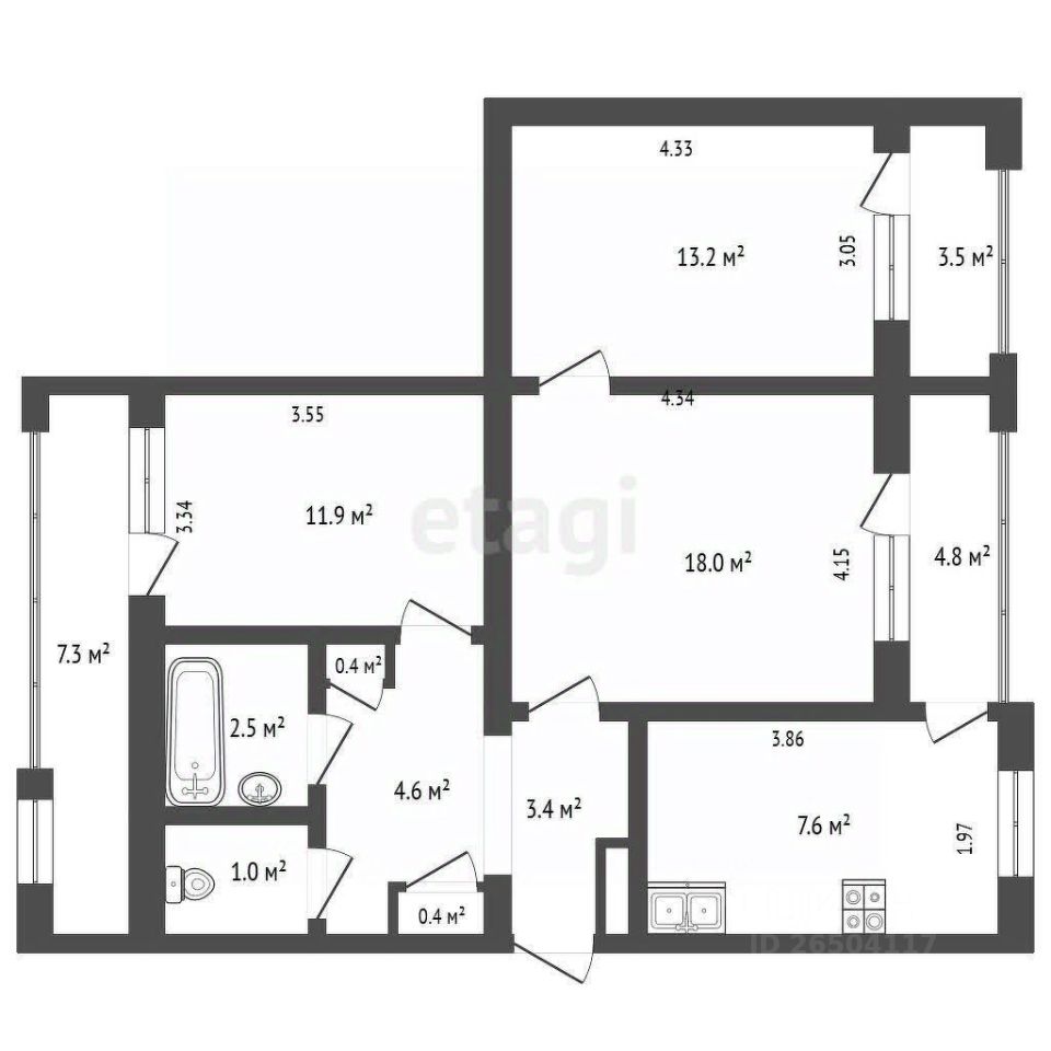 7,6 м²