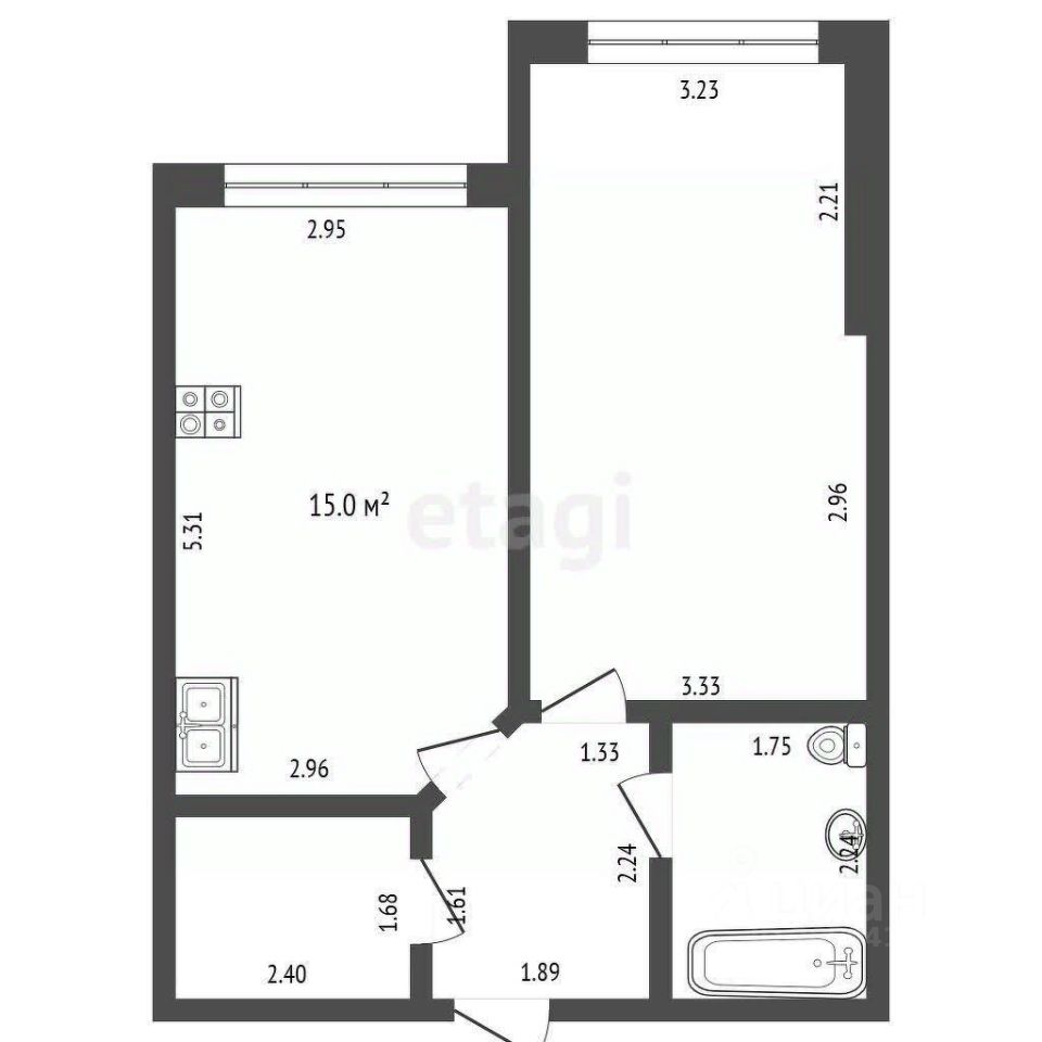 Высота потолков 3.1 м — ощущение простора.