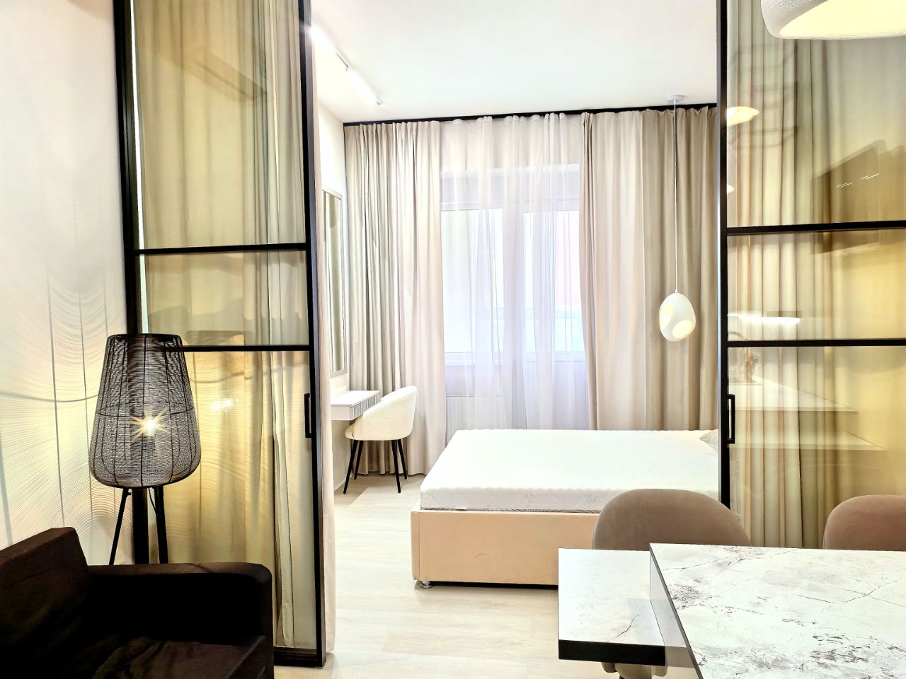 - панорамные окна с видом море выходят на юго-запад, наполняя квартиру естественным освещением;