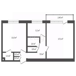 Общая площадь составляет 45,2 кв. м, с изолированными комнатами. Планировка функциональная, с раздельным санузлом и прихожей, зонирующей пространство. Квартира продается в состоянии, требующем капитального ремонта, что позволяет новому владельцу сразу приступить к отделке по собственному проекту.