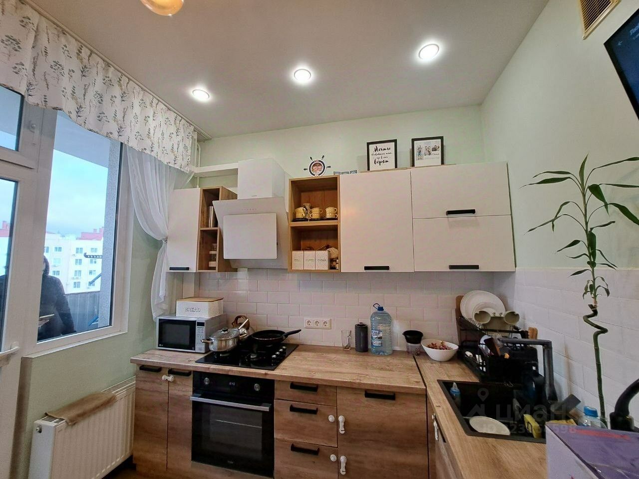 В квартире выполнен современный качественный ремонт.Просторная комната и кухня, окна выходят во двор, удобно для родителей с детьми,санузел и ванна совмещенные, балкон с видом на город.