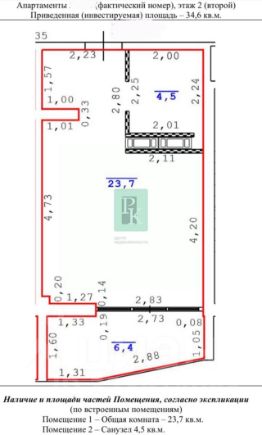 Общая площадь апартаментов- 34.6 кв.м. Расположены на 2-м этаже 5-тиэтажного корпуса. Комната свободной планировки, просторная ванная, прихожая, гардеробная, лоджия. Выполнена предчистовая отделка. Высота потолков 2.85м.