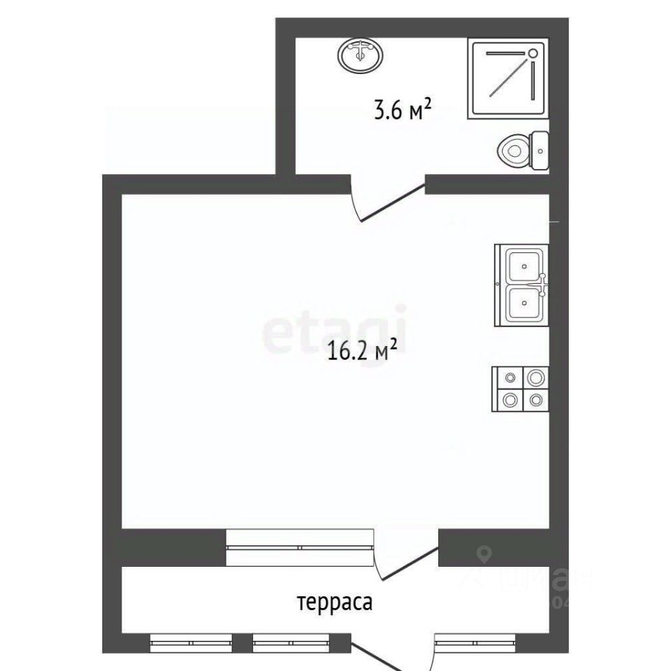 Площадь 19,8 м², с жилой зоной 16,2 м² .