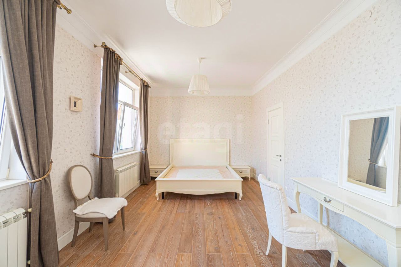 Площадь кухни-гостинной 55 кв.м. Есть гардеробная. Один санузел общий и второй санузел размером в 10 кв.м. индивидуальный с входом из спальни.
