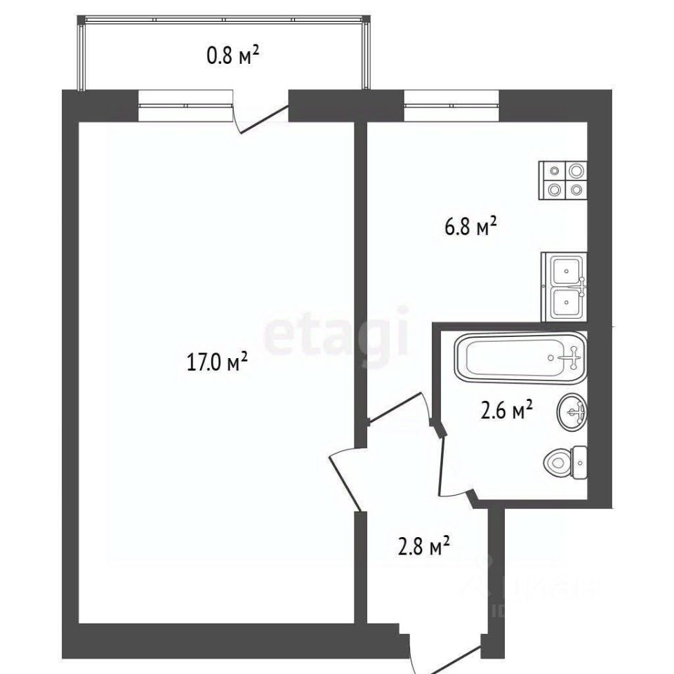 Общая площадь квартиры 30,8м2