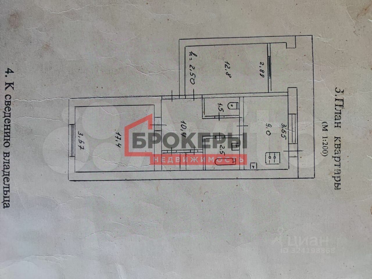 Жилaя — 30,2 м² (комнаты 17,4 м² / 12,8м²)