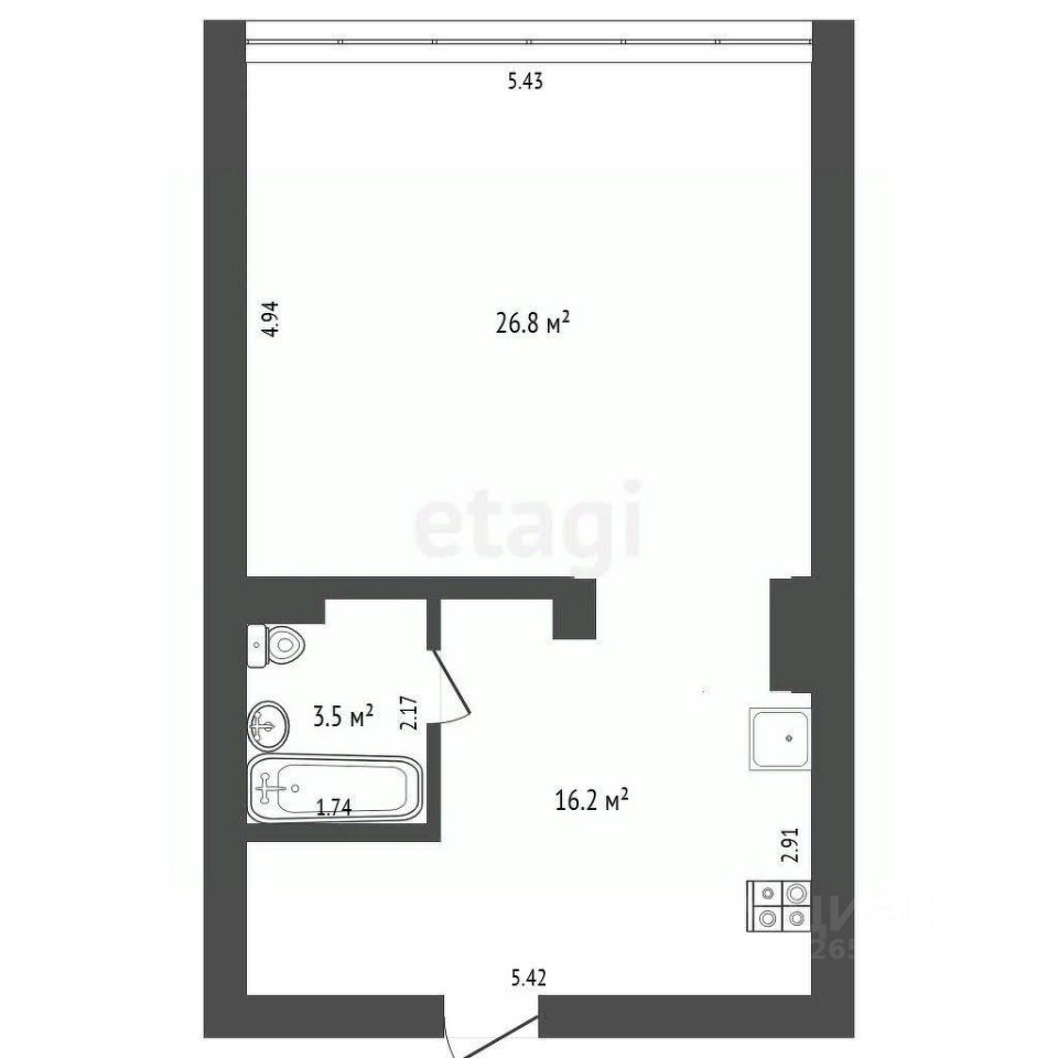 Общая площадь: 46,5 м²