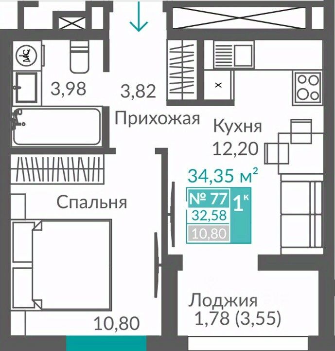 32,58 м²