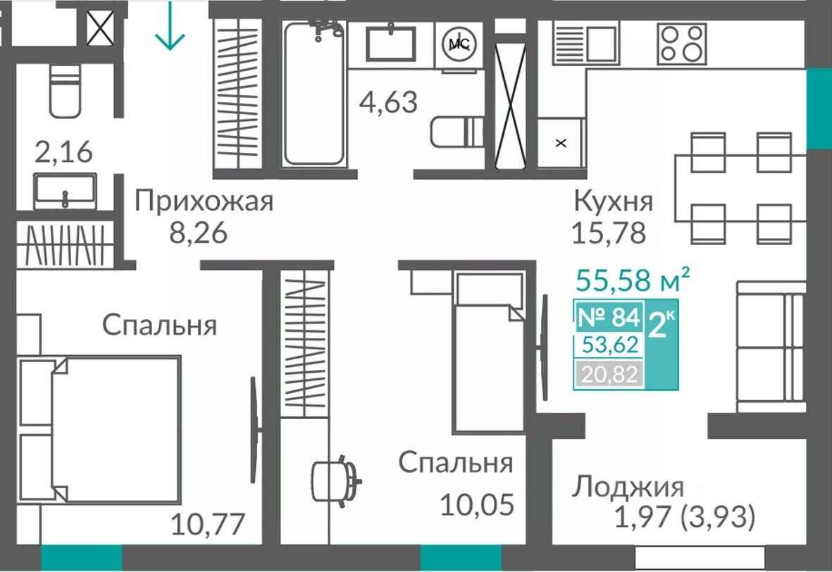 Продаётся 2-комнатная квартира в строящемся доме (Секция 2), срок сдачи: III-кв. 2027, общей площадью 53.62 кв.м., на 10 этаже. Новый жилой квартал "Видный" от застройщика "Монолит" расположен по адресу Севастополь, Балаклавское шоссе