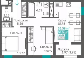 Продаётся 2-комнатная квартира в строящемся доме (Секция 2), срок сдачи: III-кв. 2027, общей площадью 53.62 кв.м., на 12 этаже. Новый жилой квартал "Видный" от застройщика "Монолит" расположен по адресу Севастополь, Балаклавское шоссе