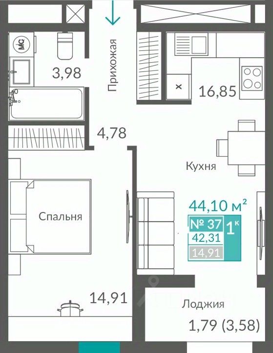 42,31 м²