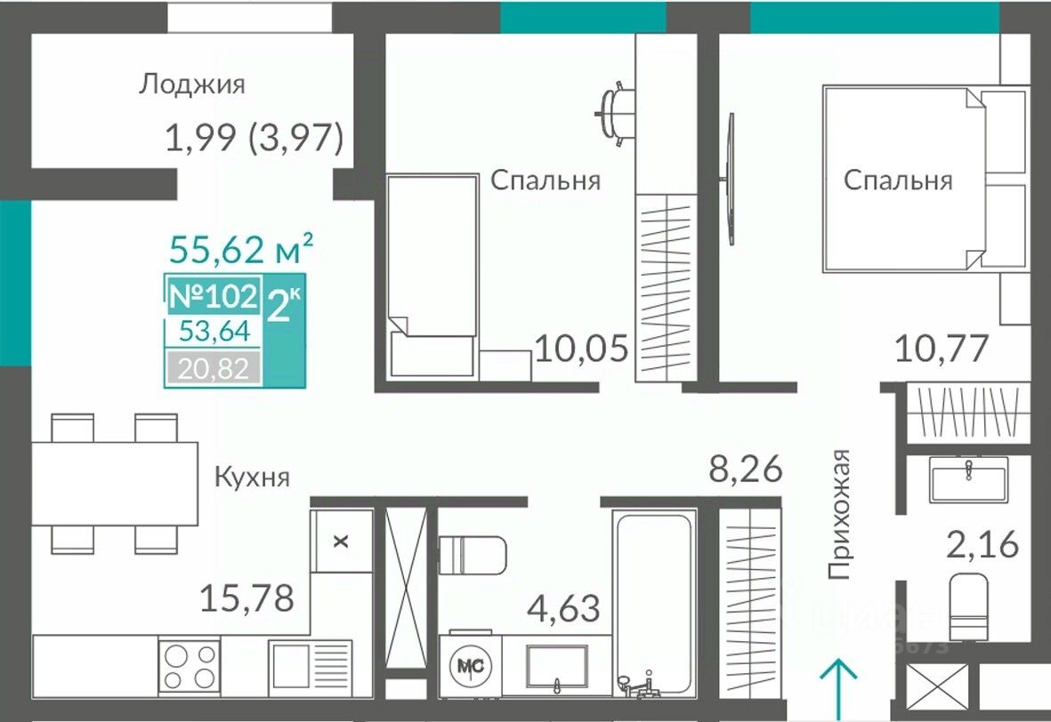 Продаётся 2-комнатная квартира в строящемся доме (Секция 1), срок сдачи: II-кв. 2027, общей площадью 53.64 кв.м., на 12 этаже. Новый жилой квартал "Видный" от застройщика "Монолит" расположен по адресу Севастополь, Балаклавское шоссе