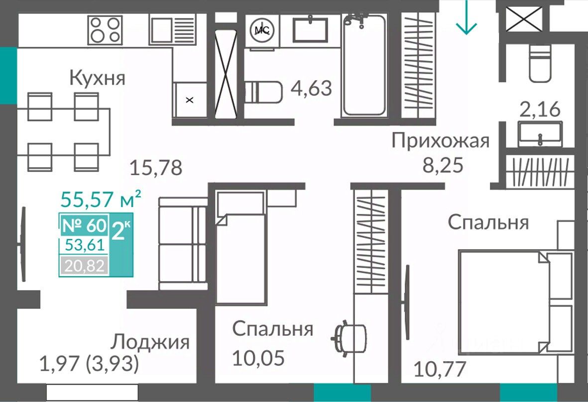 Продаётся 2-комнатная квартира в строящемся доме (Секция 2), срок сдачи: III-кв. 2027, общей площадью 53.61 кв.м., на 8 этаже. Новый жилой квартал "Видный" от застройщика "Монолит" расположен по адресу Севастополь, Балаклавское шоссе