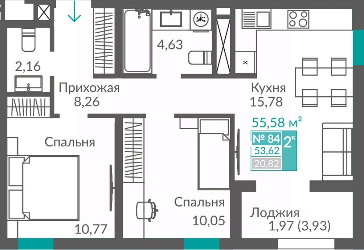 Продаётся 2-комнатная квартира в строящемся доме (Секция 2), срок сдачи: III-кв. 2027, общей площадью 53.62 кв.м., на 10 этаже. Новый жилой квартал "Видный" от застройщика "Монолит" расположен по адресу Севастополь, Балаклавское шоссе