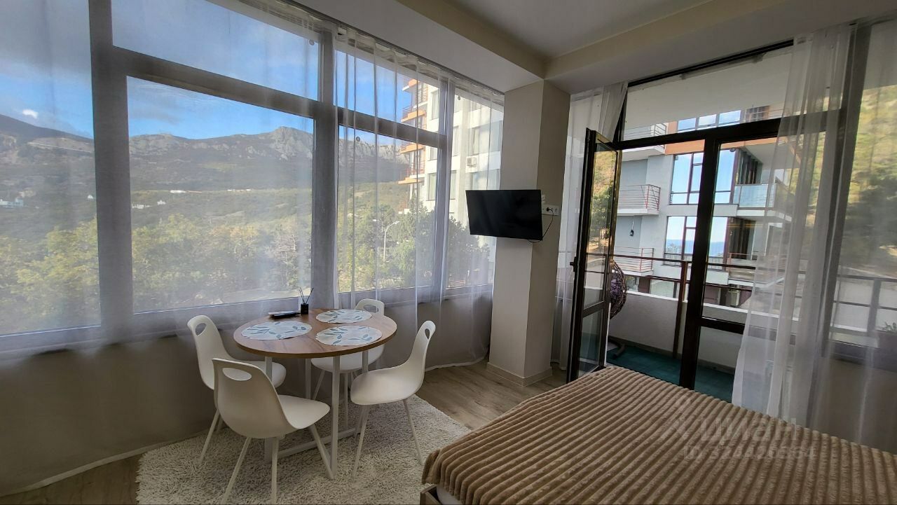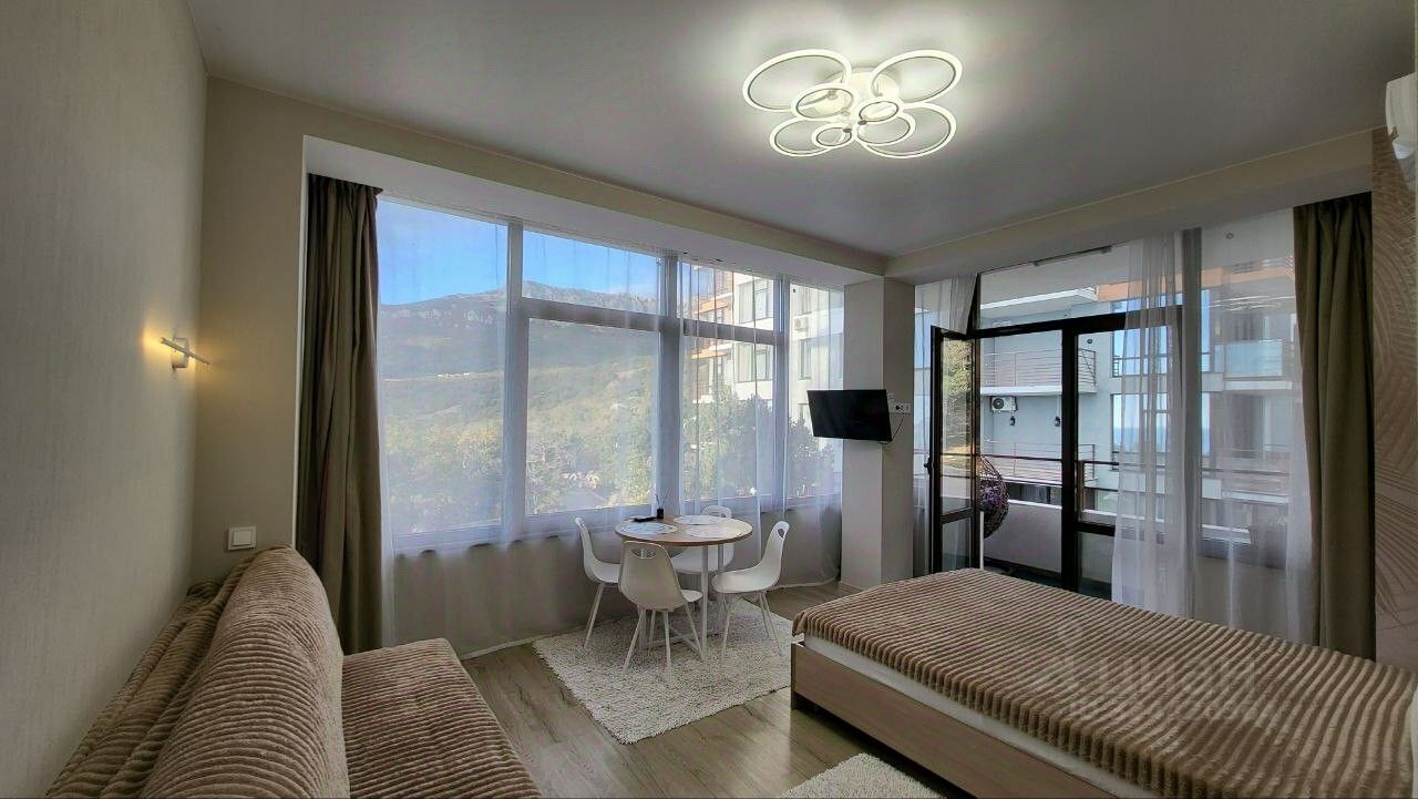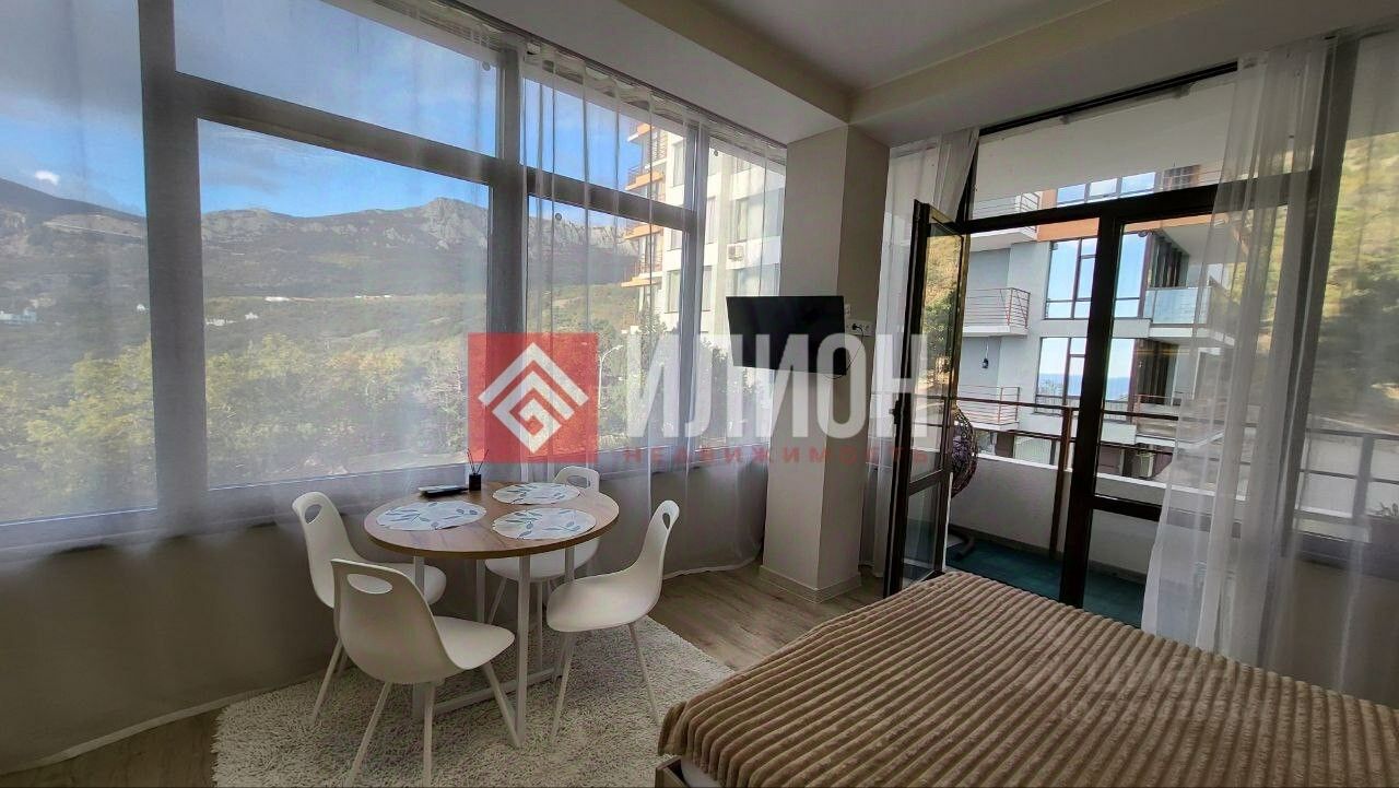 Просторные апартаменты с качественным евроремонтом расположены в живописнейшем уголке Крыма, откуда открывается потрясающий вид на море и горы.