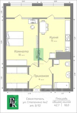 -Общая площадь: 42,5 м2