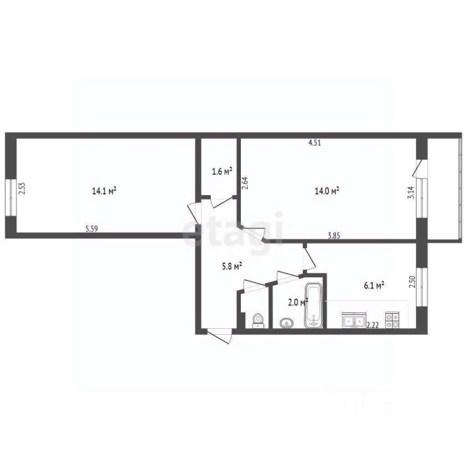 Общая площадь - 45,9 м²