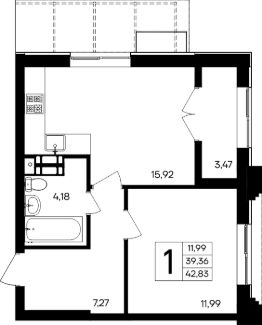 Продаётся 1-комнатная квартира в строящемся доме (Дом 5), срок сдачи: II-кв. 2028, общей площадью 42.83 кв.м., на 3 этаже. "Семисчастье" - город счастья.