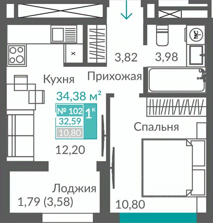 32,59 м²