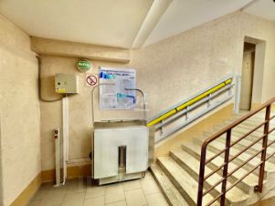 Лифт в подъезде на первый этаж для людей с ограниченными возможностями.