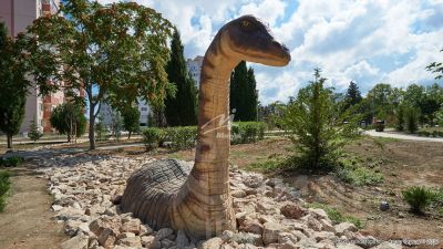 Парк "Динопарк" , большой зеленый парк с инсталляциями динозавров и детскими площадками.