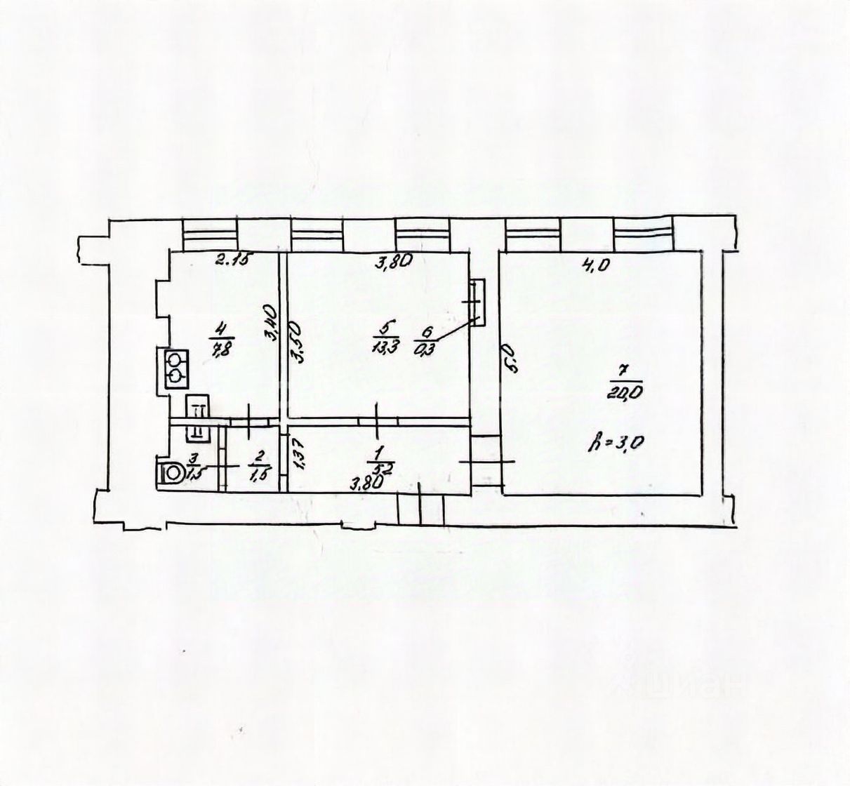 Квартира раположена на втором этаже, комнаты раздельные (20 кв.м и 13,3 кв.м), кухня - 7,8 кв.м. Состояние - жилое, установлена новая вхоная дверь, металлопластиковые окна и кондиционер.