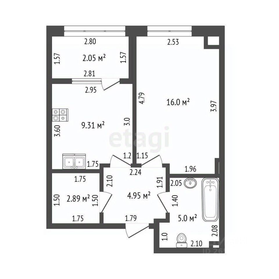 Общая площадь 38,4 кв.м.