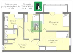 Продается трехкомнатная квартира 50.4 м2, на 4/5 этаже дома. Расположена в г. Севастополь, Гагаринский район, ул. Пролетарская, д. 34.