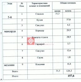 Квартира общей площадью 157,6 кв.м. расположена на 5,6 этажах.