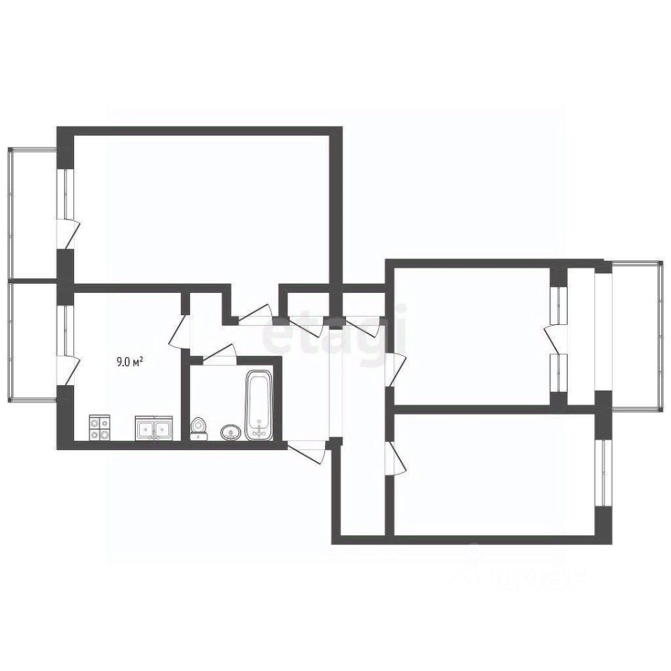 Квартира имеет два дополнительных помещения — балкон и лоджию.