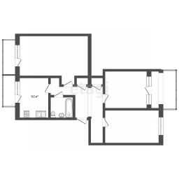 3-комнатная квартира площадью 72 м² расположена на 5 этаже 5-этажного дома.
